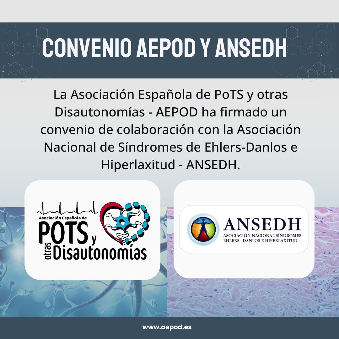 Asociación Española de PoTS y otras Disautonomías (AEPOD) es una organización sin ánimo de lucro registrada en España con NIF G67771816. Los logotipos son diseños de Montse Sonsona © registrados, con permiso concedido para utilizarlos a la Asociación Española de PoTS y otras Disautonomías (AEPOD) 2021. Reservados todos los derechos de traducción y reproducción.