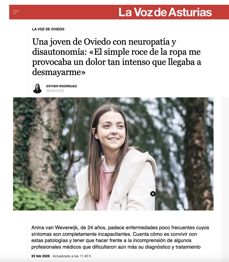 Anina da visibilidad a la disautonomía y la neuropatía autoinmune en Asturias: «El simple roce de la ropa me provocaba […]