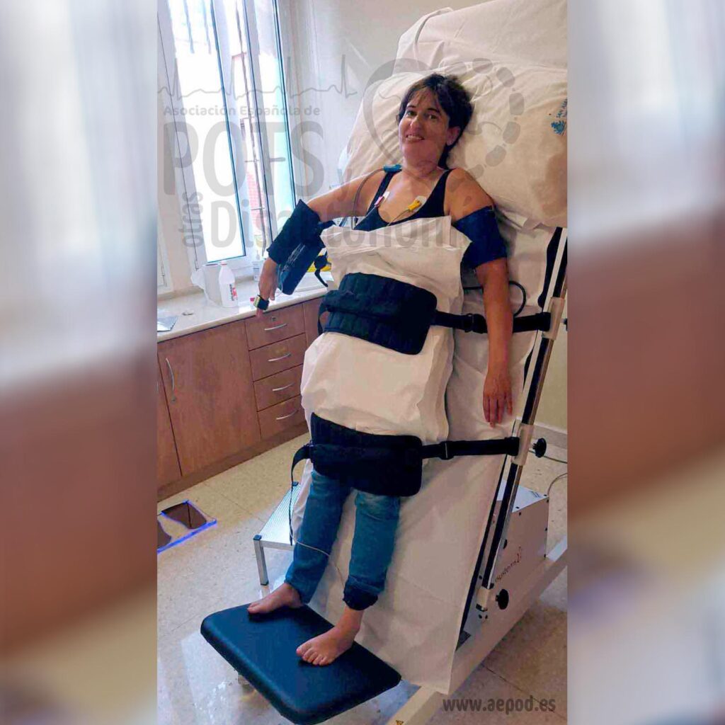 Foto de Susana en la prueba de mesa basculante. AEPOD.