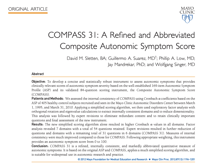 Sletten DM, Suarez GA, Low PA, Mandrekar J, Singer W. COMPASS 31: a refined and abbreviated